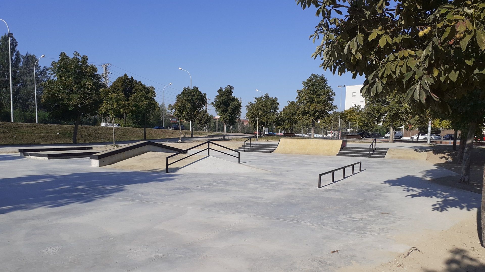 Skatepark de formigó, dissenyat per l’empresa Daw Office atenent les demandes dels usuaris. L’skatepark, construït per SPOKO RAMPS, substitueix el que ja hi havia al mateix lloc.